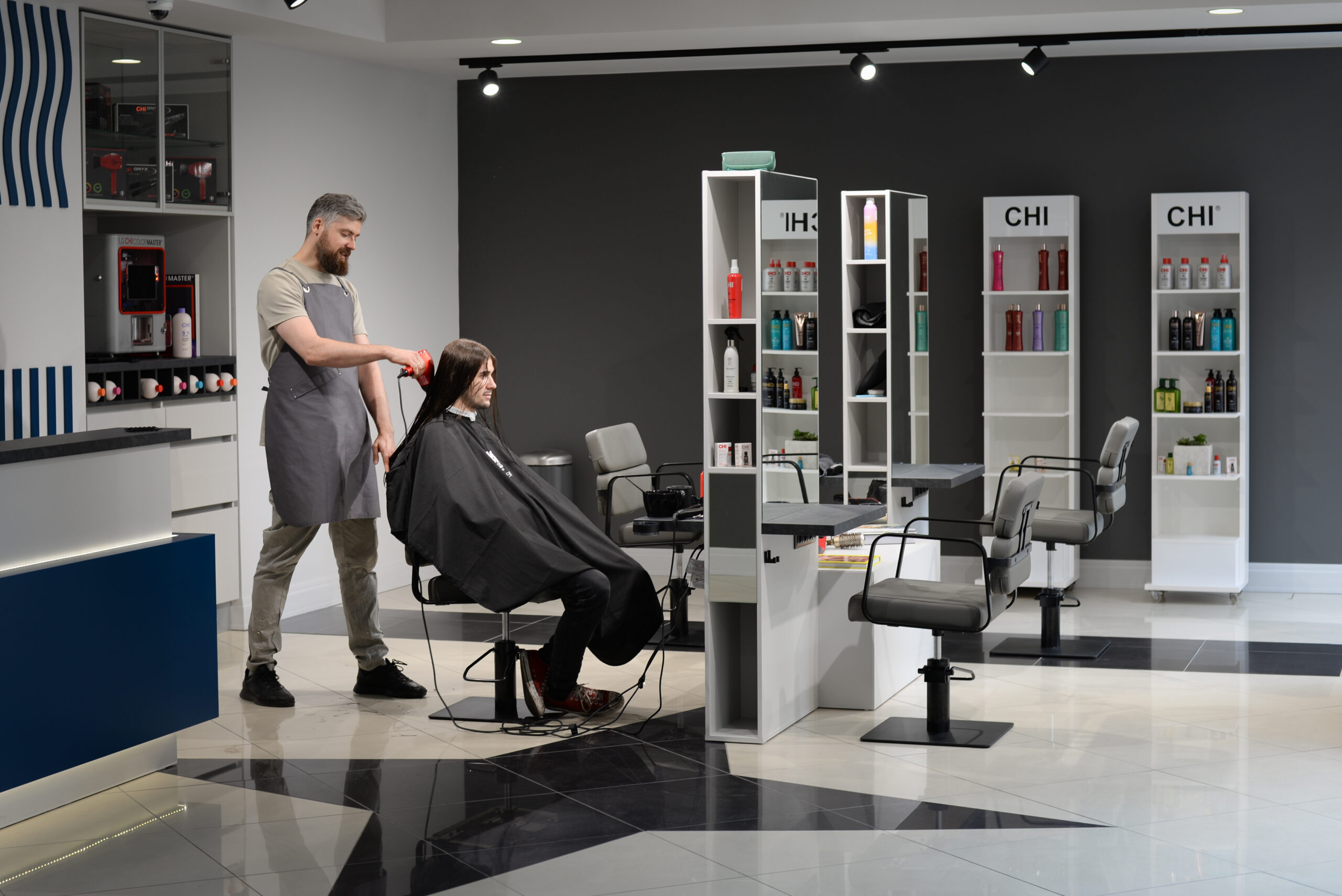 3. Profesionāla matu mazgāšana, lai mati būtu sagatavoti perfektam griezumam.